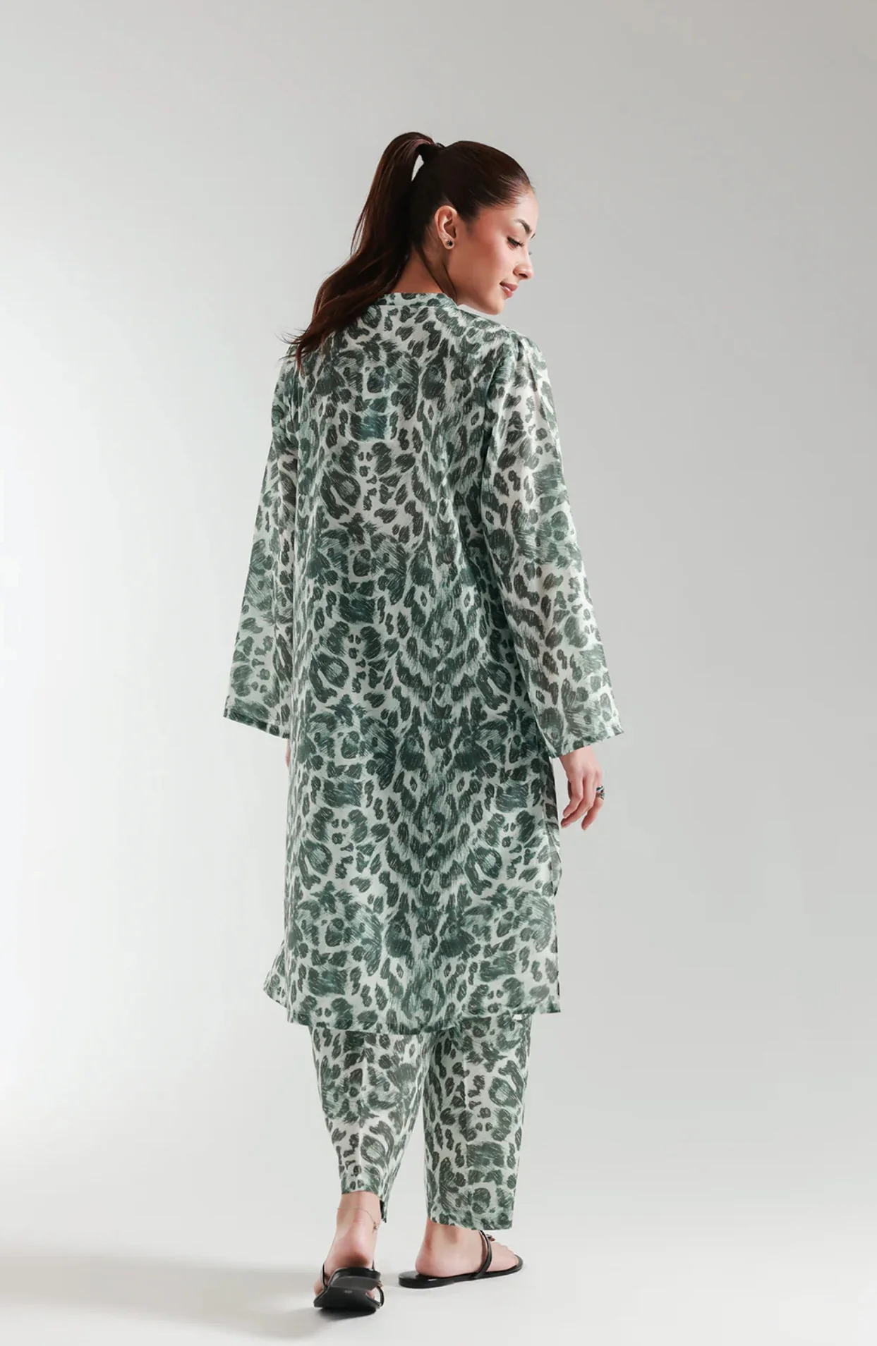 A contemporary composition is layered on this trendy silhouette shirt beautifully adorned with captivating artistic animal pattern printed in an attractive color portrayed on a deep black canvas. Paired with a matching trouser, this style statement outfit is a perfect option for you to embrace this spring season.