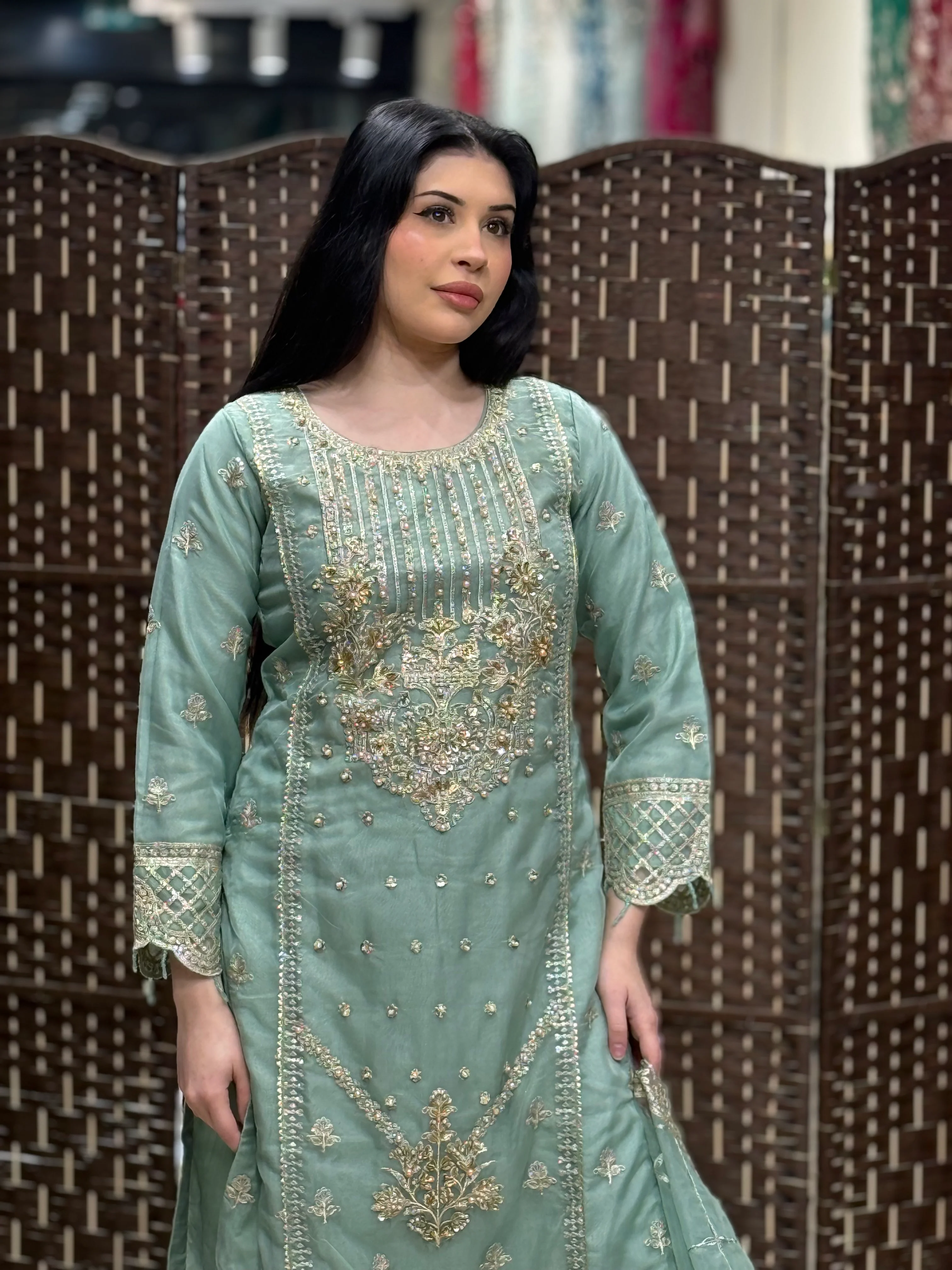Where tradition meets timeless elegance ✨intricate handwork on a dreamy blue canvas ~